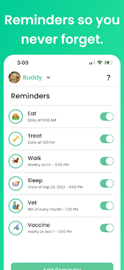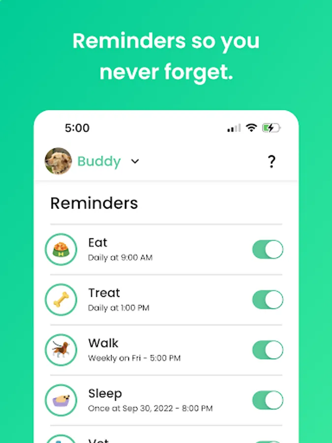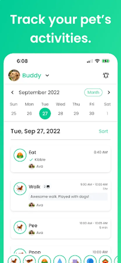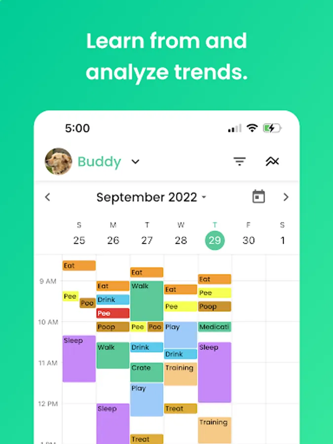 Our dog training app allows you and your pack members to stay up to date on whatever your dog is up to, whether sleeping, walking, peeing, pooping, barking, or anything else with the help of a dog tracker. Features such as our dog activity log, patterns viewer, and reminders allow family, friends, and dog walkers to work together to efficiently manage your dog’s day to day activities.