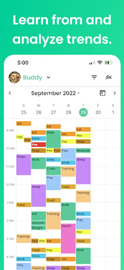 ★ Use the patterns viewer to identify trends in your dog’s behavior