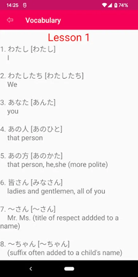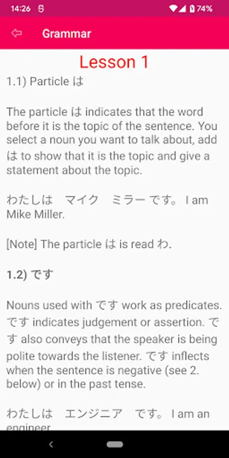 - 50 lessons covering a broad range of Japanese words, phrases, grammar, and pronunciation