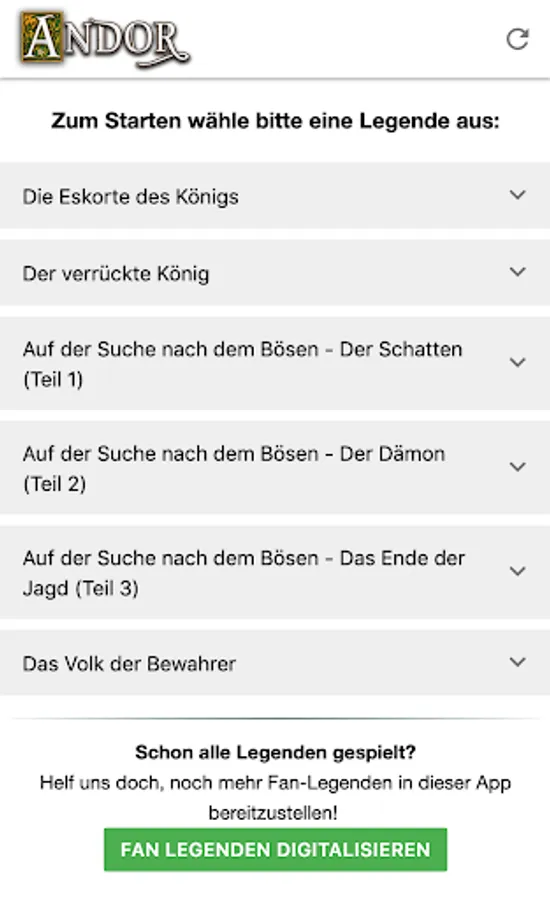 Andor / The Legends of Andor is a trademark of the author Michael Menzel and Franckh-Kosmos Verlags-GmbH & Co. KG. This app, related web applications and their content are not official Andor products and are not sponsored, authorized or supported by the author or publisher. This is an open source project of the Andor community.