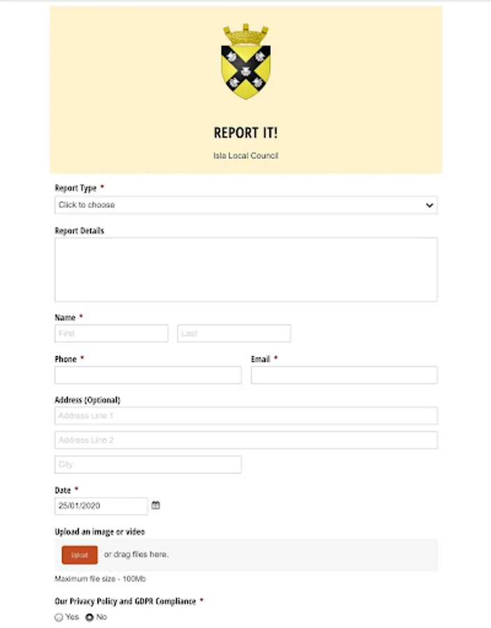 It is an easy to use tool, enabling you to send in a report or any notification direct to your Local Council offices.