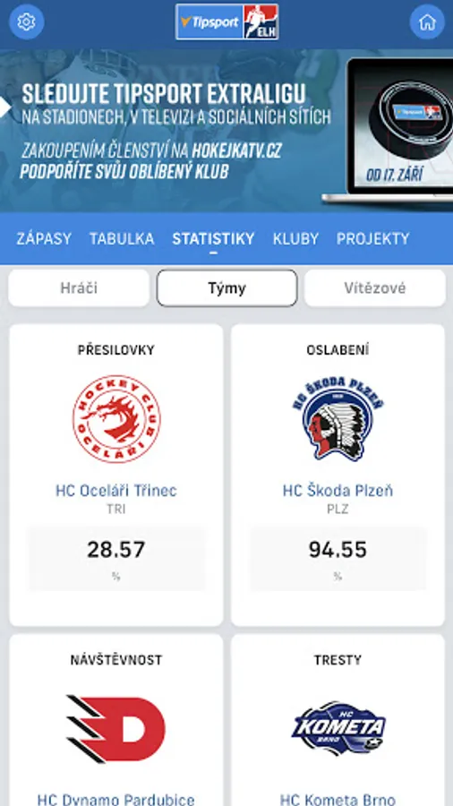 The official application of the Tipsport ice hockey extra league brings fans the most important information about their favorite team in a clear form. That is, how and when he plays, what form he takes, where he is in the table, or who is the most productive player in the team. Each fan can choose whether they want to watch all the extra-league events, or whether they can choose only their favorite team in the options. The application does not lack the most interesting articles on the hokej.cz website, as well as great videos of important match events. Whether it's goals, interventions, hits or battles. Of course, there is a breakdown of already played, but also future matches, including information on which television channel will broadcast the match.