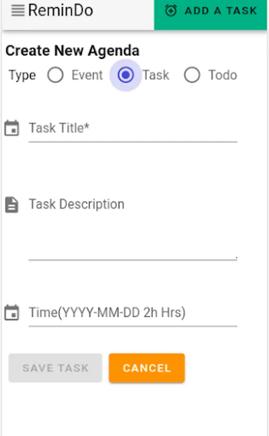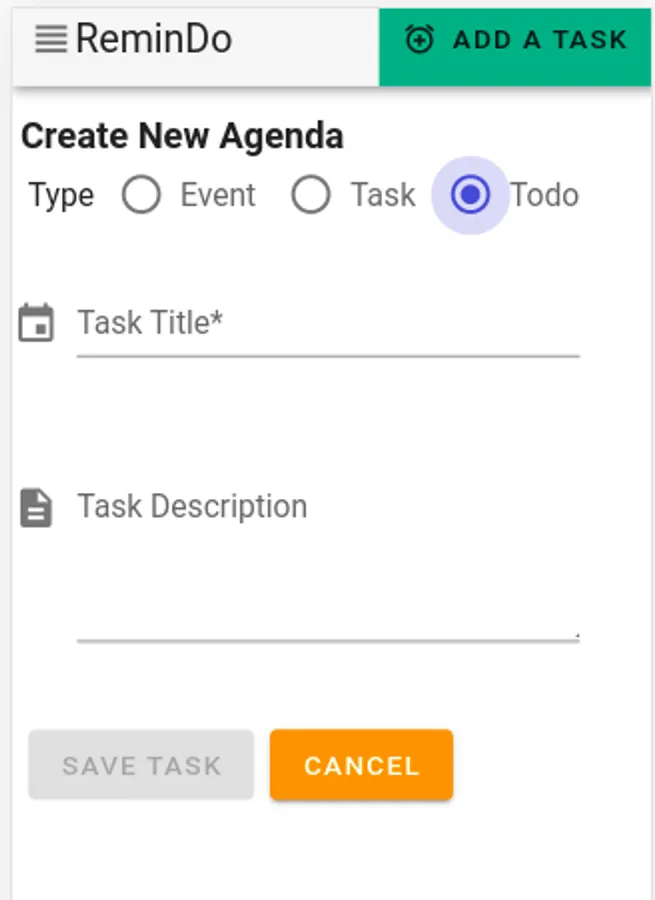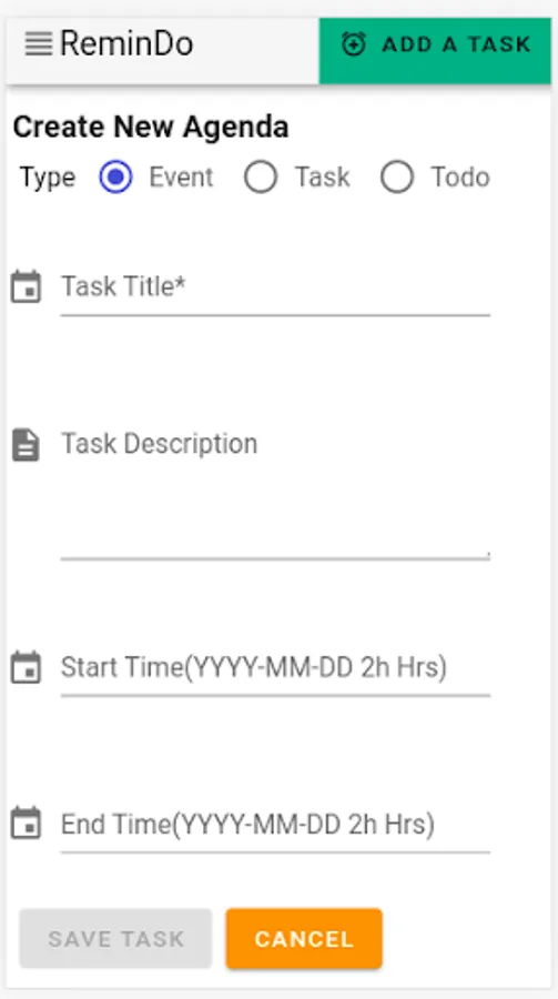 Agenda can be of 3 varying type: Event, Task and todo.