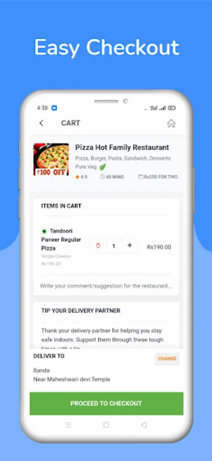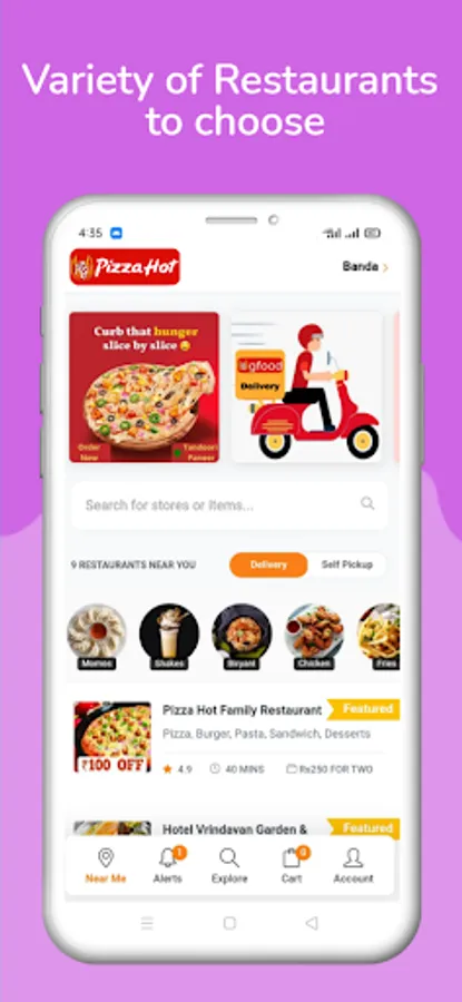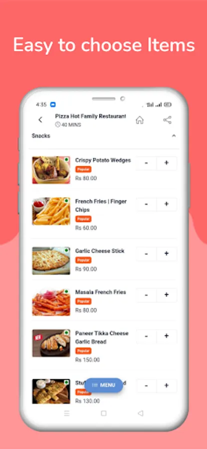 We have all types of fast food items from Pizza to Ice-creams.