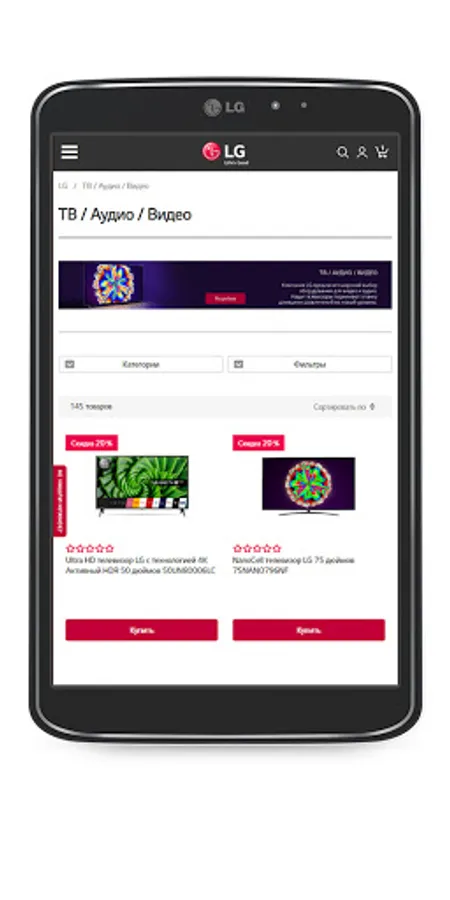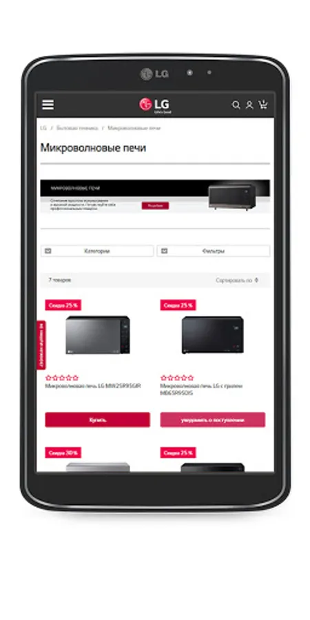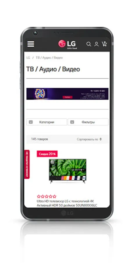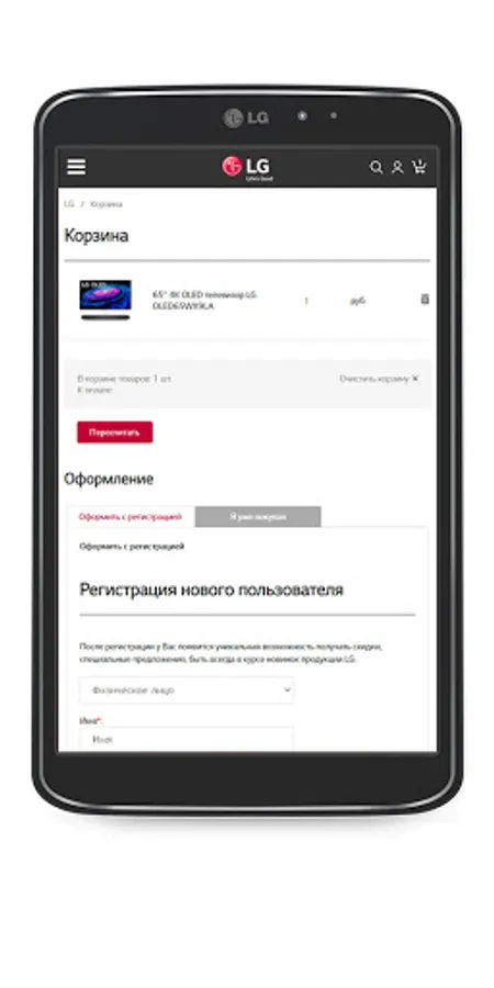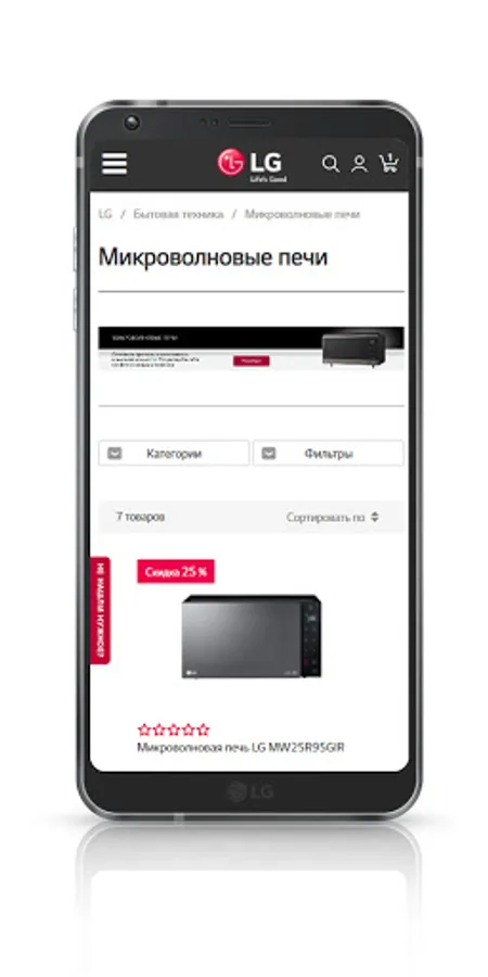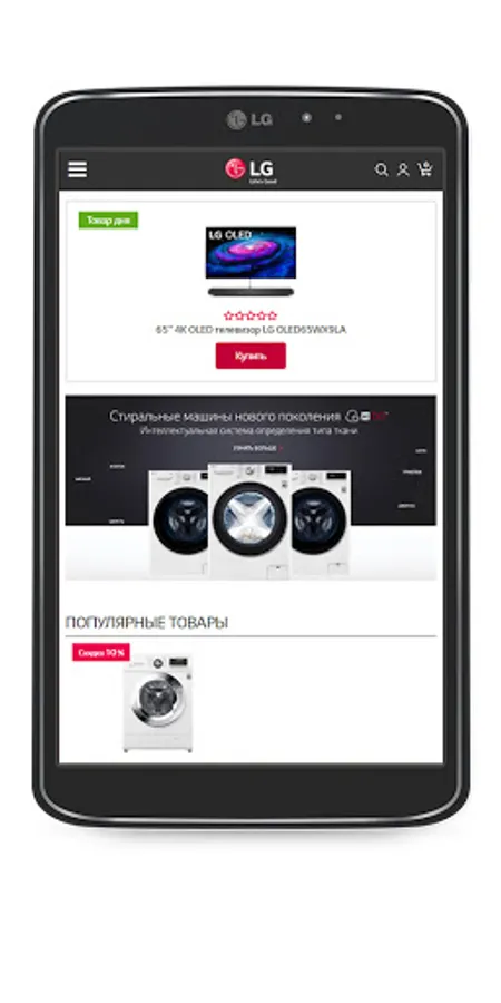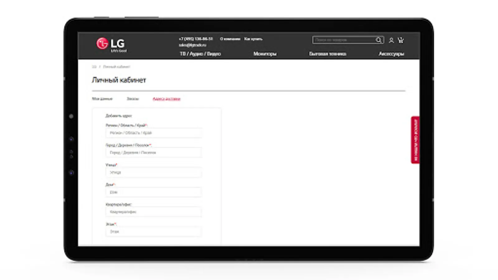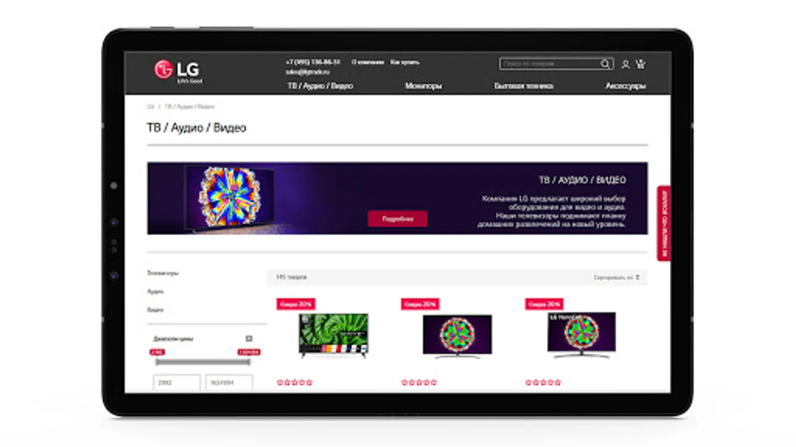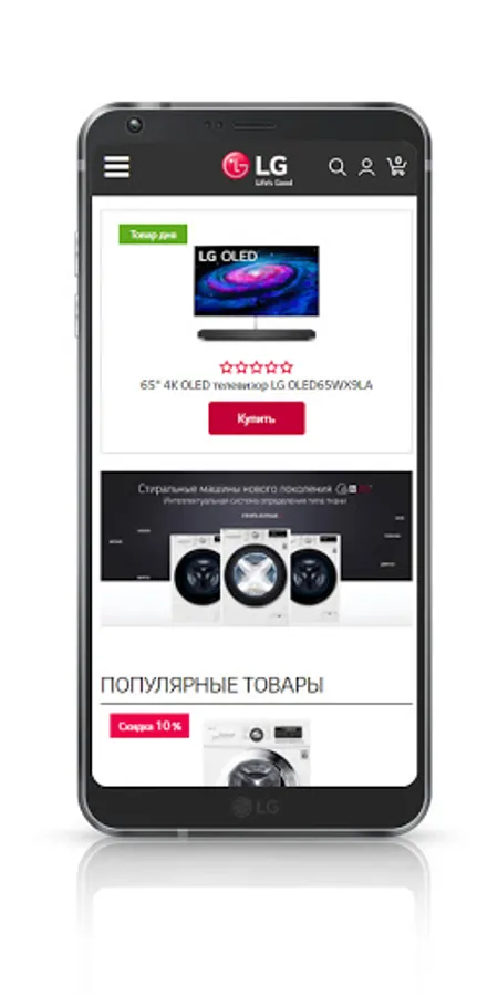 After logging into the store's landing page, the visitor gets access to a wide range of LG home appliances and electronics at attractive prices. Payment is made by credit card on the store's website, delivery is carried out in the Russian Federation by transport companies, delivery in Moscow and Moscow region is carried out by its own logistics service and transport companies. The calculation of the cost of delivery is carried out to the delivery address automatically before paying for the goods in the basket.