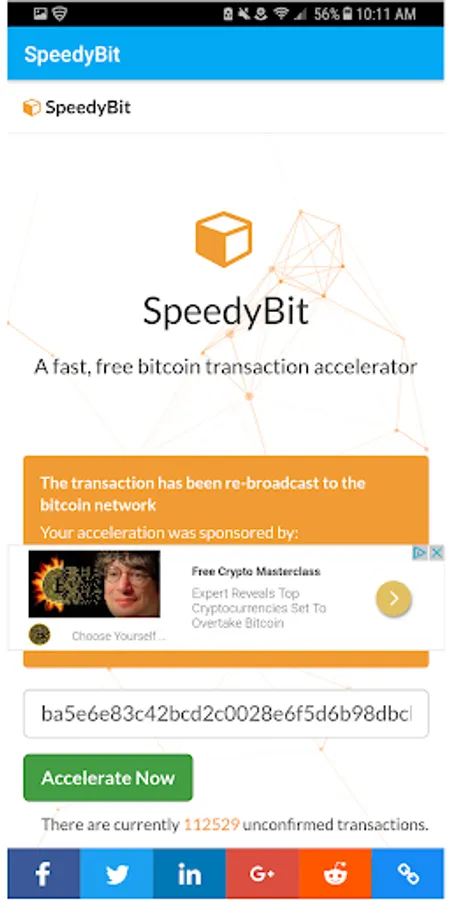 Have low-fee bitcoin transactions that have been unconfirmed for hours? SpeedyBit can speed up confirmation by rebroadcasting the transaction to the bitcoin network!