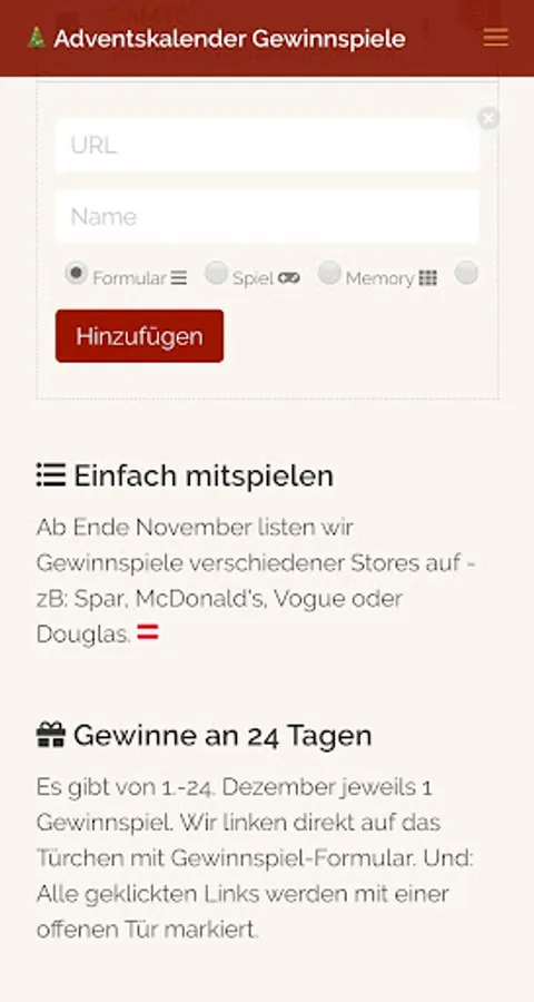 Save your own links: There are often regional advent calendar competitions. Extend the list of advent calendars of your favorite stores to increase your chances of winning.