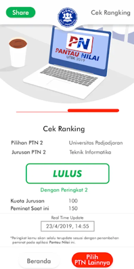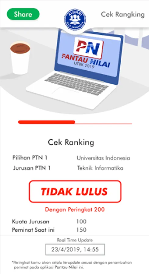 PANTAU NILAI application, the application monitors the value of the 99% ACCURATE, BIGGEST AND RELIABLE SBMPTN!