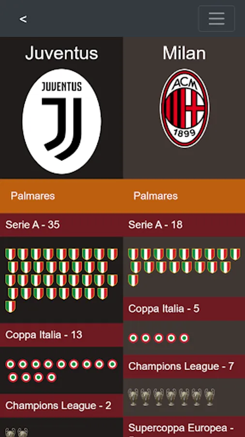 In addition, the historical archive of the Serie A is at your disposal to watch the championships from 1930 to today. Access the statistics of all the teams and compare two teams: their palmares, their records, all the Serie A games played!
