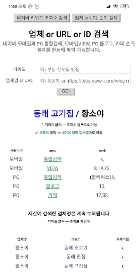 Naver Mobile and PC integrated search, mobile VIEW, PC blog, cafe ranking results can be seen at a glance.