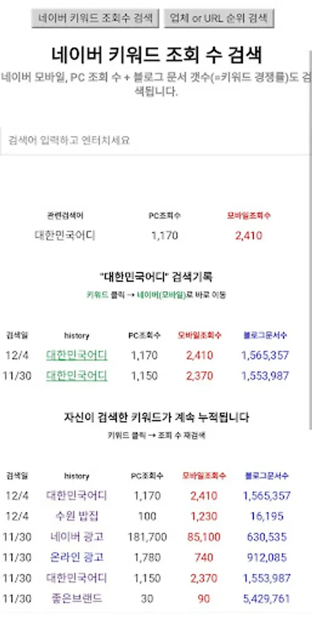 The history of the keywords you searched continues to accumulate, and even if you searched for the same keywords, you can see them at a time by date to see how your keyword searches are changing.