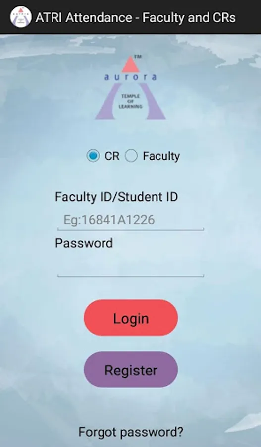 1. In Home page, before doing anything in the app, select whether you are CR or Faculty.