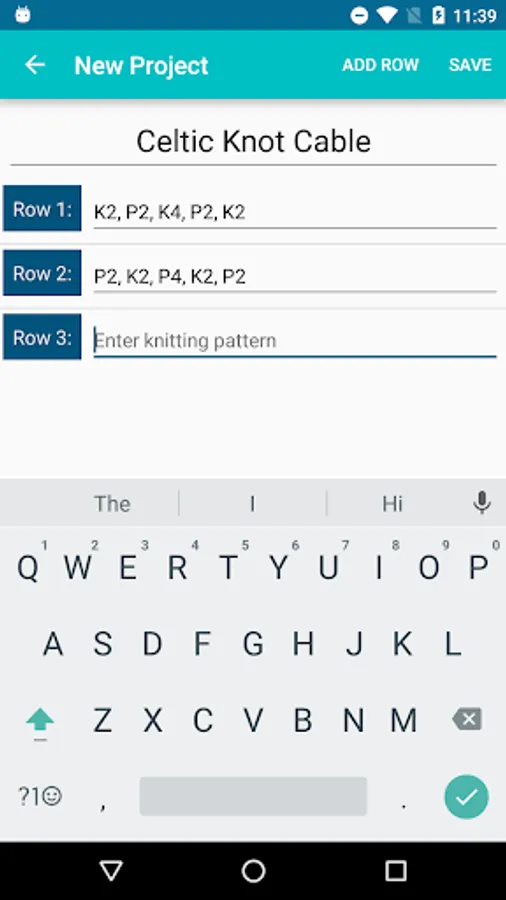 Save new projects by entering the stitch pattern for each row. Work on a project by selecting it from the main list and view the pattern row by row. Use the stitch counter and the spare counter to track your progress within the row.