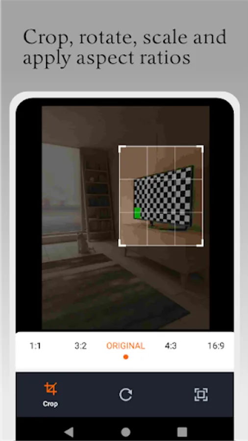 You can use it to radically compress any image in size by dropping some quality - this is the main purpose of the app. Additionally, while at it, you can prepare the image by cropping it, rotating, scaling, making it fit specific aspect ratio and so on.