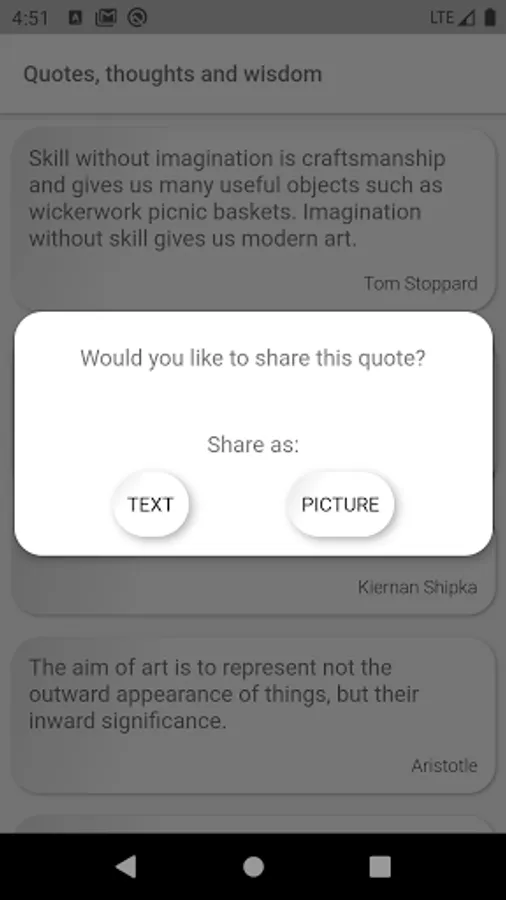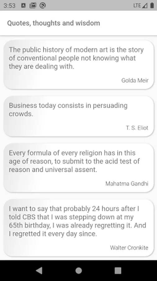 Sometimes we all need some random wisdom. I was not satisfied with other "quotes" apps so I made this one. Do try it out. Sharing the quotes is also built in.