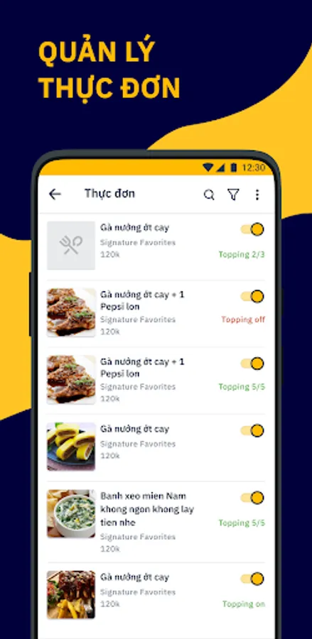 - Menu management: Design menu by creating items, updating prices, item images and item status (available or out of stock)