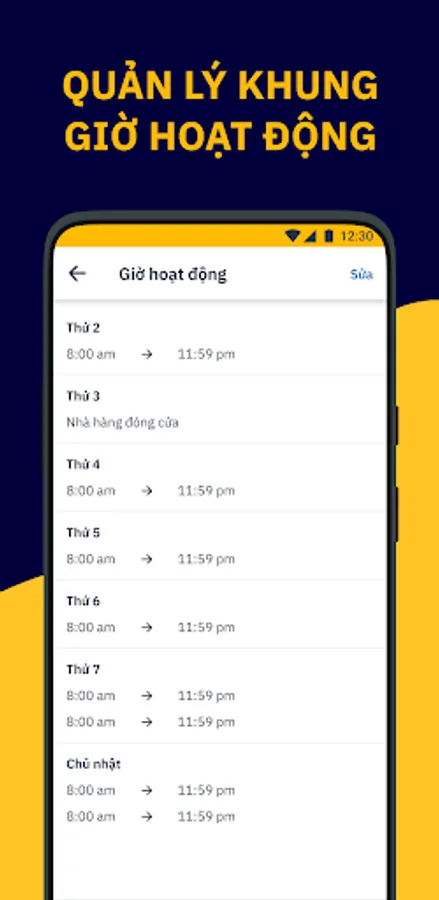 - Profile management: View and adjust the hours of operation as well as the opening/closing status of your store.