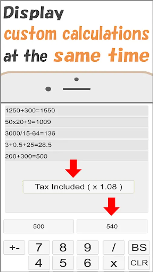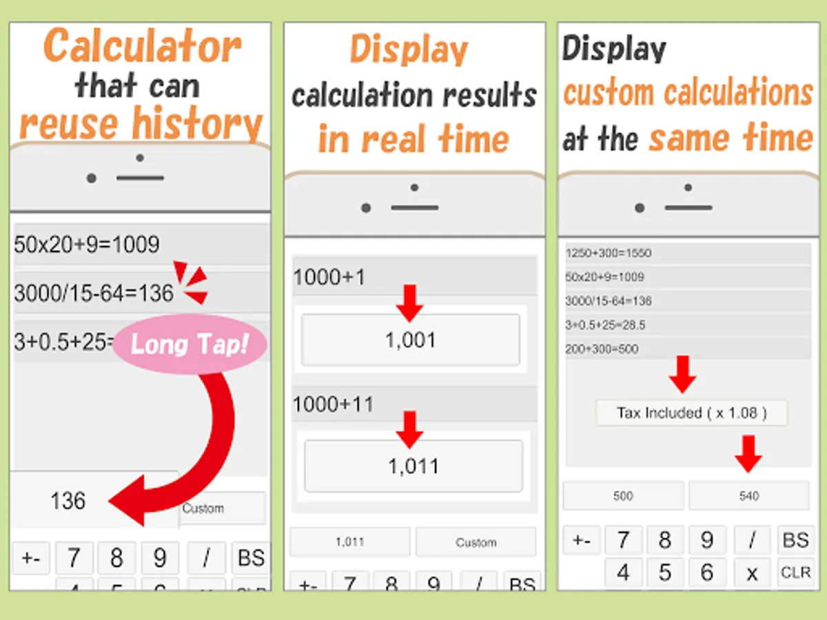 The set calculation results such as tax calculation and exchange calculation are displayed simultaneously to the right of the normal calculation results.