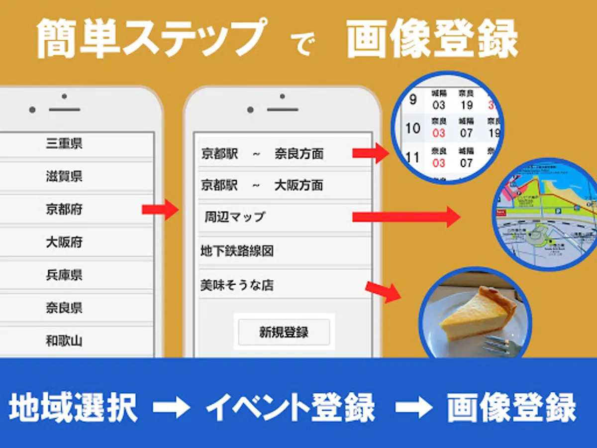 旅行前に目的地までの経路や駅の時刻表や周辺マップなどを調べて保存したスクリーンショットや写真などの画像をカテゴリーごとに管理できます。