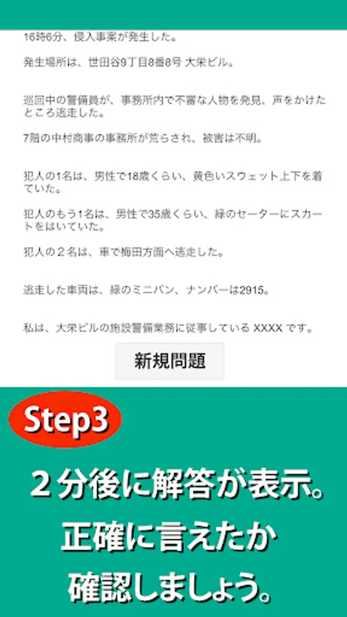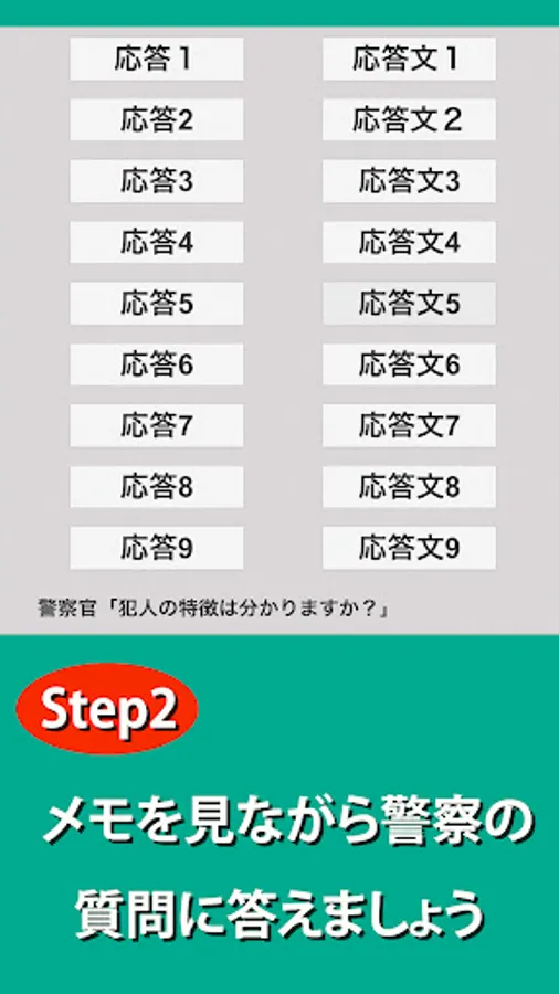 4. Tap "Response" and you will be asked a voice question. Please explain the situation while looking at the memo. If you can't make a voice when you're away from home, tap "Response" to display the police officer's question, so please explain the situation in your heart.