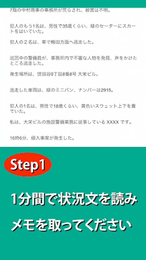 In the next 2 minutes, I will explain the situation to the police while looking at the memo.