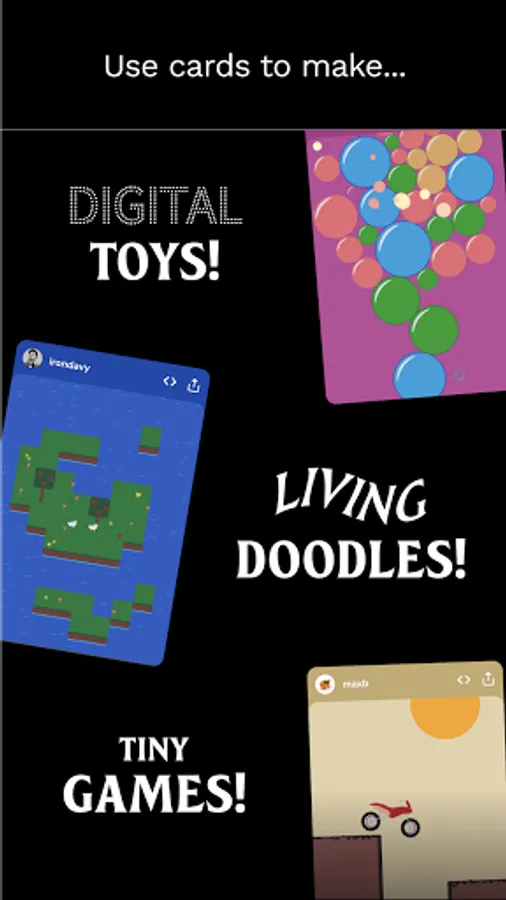 - Cards can be toys, scenes, stories, tiny worlds, animations, or just simple doodles.