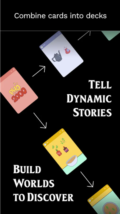 - Combine cards into decks to create worlds to explore, or to tell branching, dynamic stories.