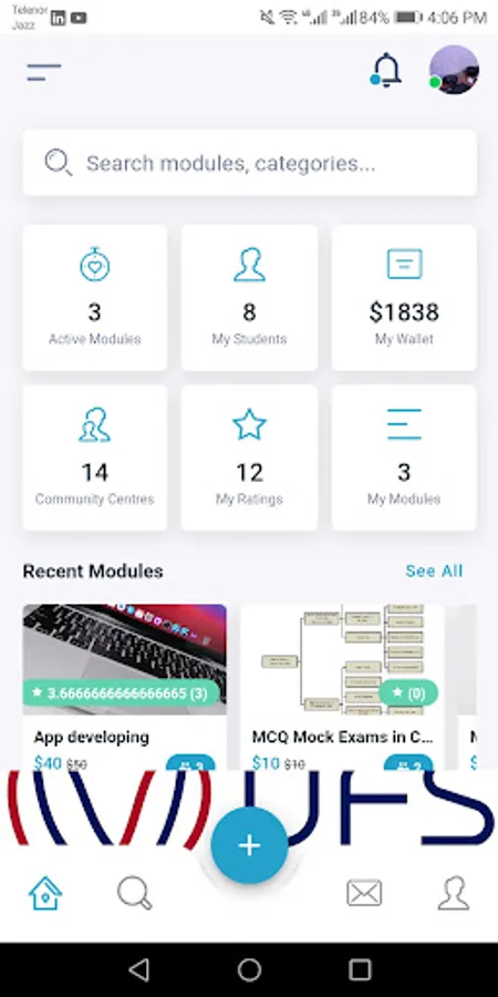 In Active Module we can update, delete, and deactivate any module. In My Students Module in which how many students have followed or subscribe to the module?. How much purchasing we have in my wallet module. The Community module includes discussions with any student. Talking to a student in the inbox like message etc.In My rating, students purchase any module, watch the video and then give the rating of the module, then we will see that rating in the facilitator app. In the search bar we can search by name or categories of any module. Create a new module in which you can put its name, description, price, etc. The facilitator car re-edit their basics information in the profile module. You can contact any students in the community module. You can create a group and add student to it.