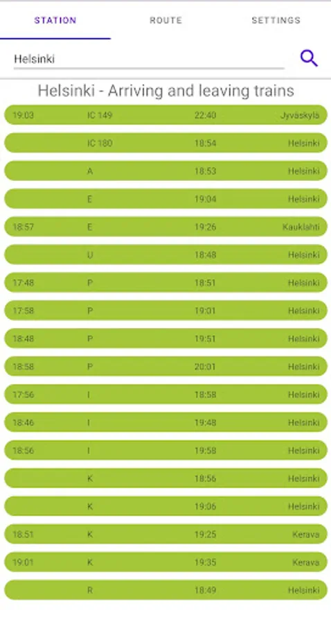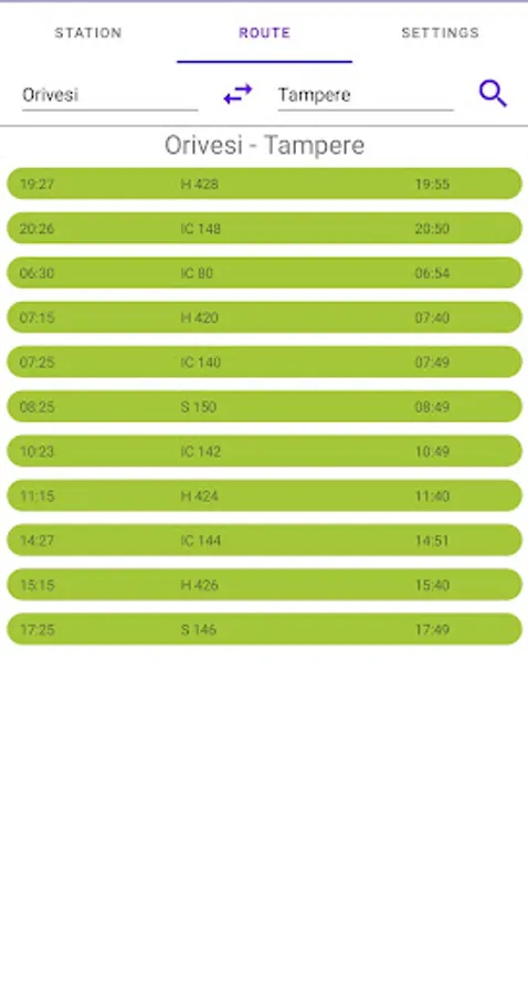 Search for trains by route.
