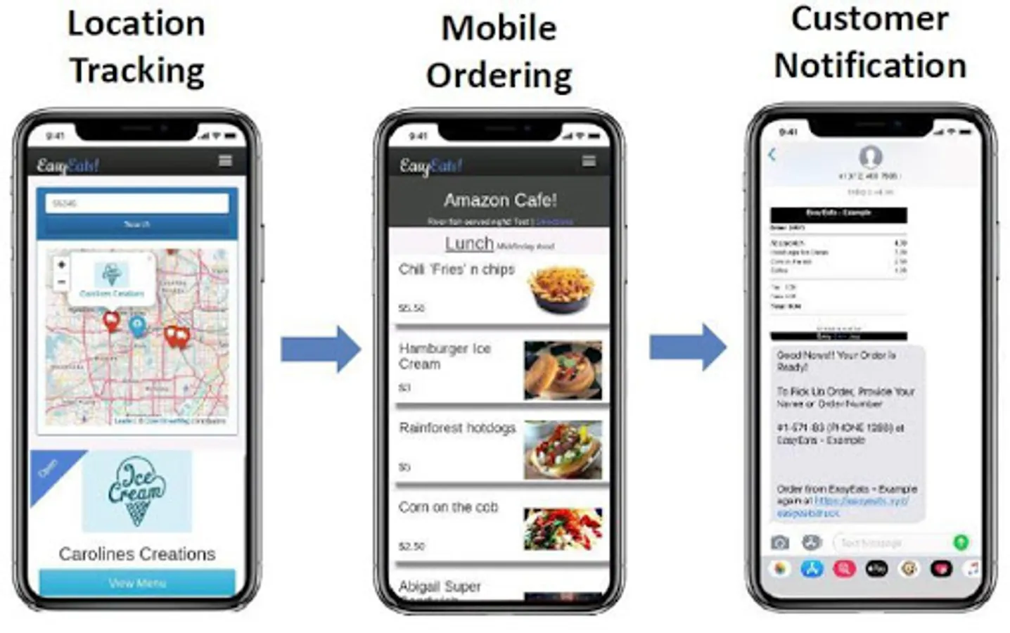 EasyEats Point of Sale is a Food Truck Centric POS system designed for their unique needs. It integrates location tracking, online and local ordering, text notifications, and a modular digital order queue to improve sales and operational efficiencies for the food truck.