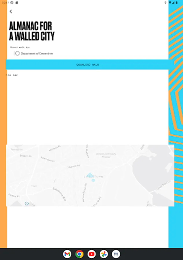 Taking the form of an interactive soundwalk accessed through a geolocated app, Almanac for a Walled City takes inspiration from the importance of almanacs and weather forecasting in Irish history to speculate on the future of Derry, as listeners walked along the city’s 400-year-old walls.