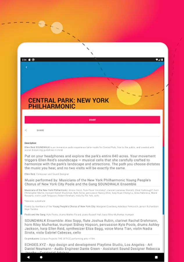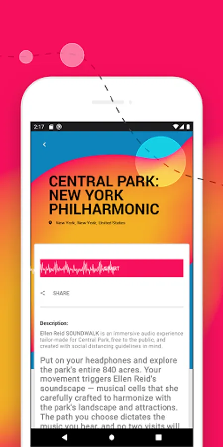 Ellen Reid SOUNDWALK is GPS-enabled work of public art that uses music to illuminate the natural environment. Created by Pulitzer Prize-winning composer Ellen Reid, SOUNDWALK uses your city’s iconic outdoor spaces as its canvas. SOUNDWALK is a meditative experience, created to encourage calm reflection and introspection, and can be experienced while following social distancing guidelines.