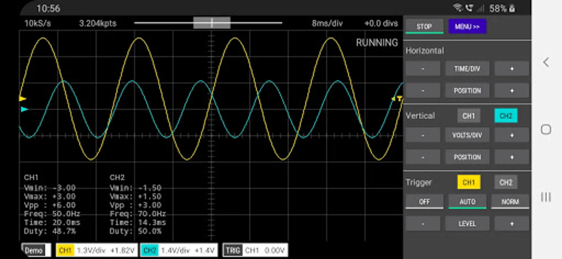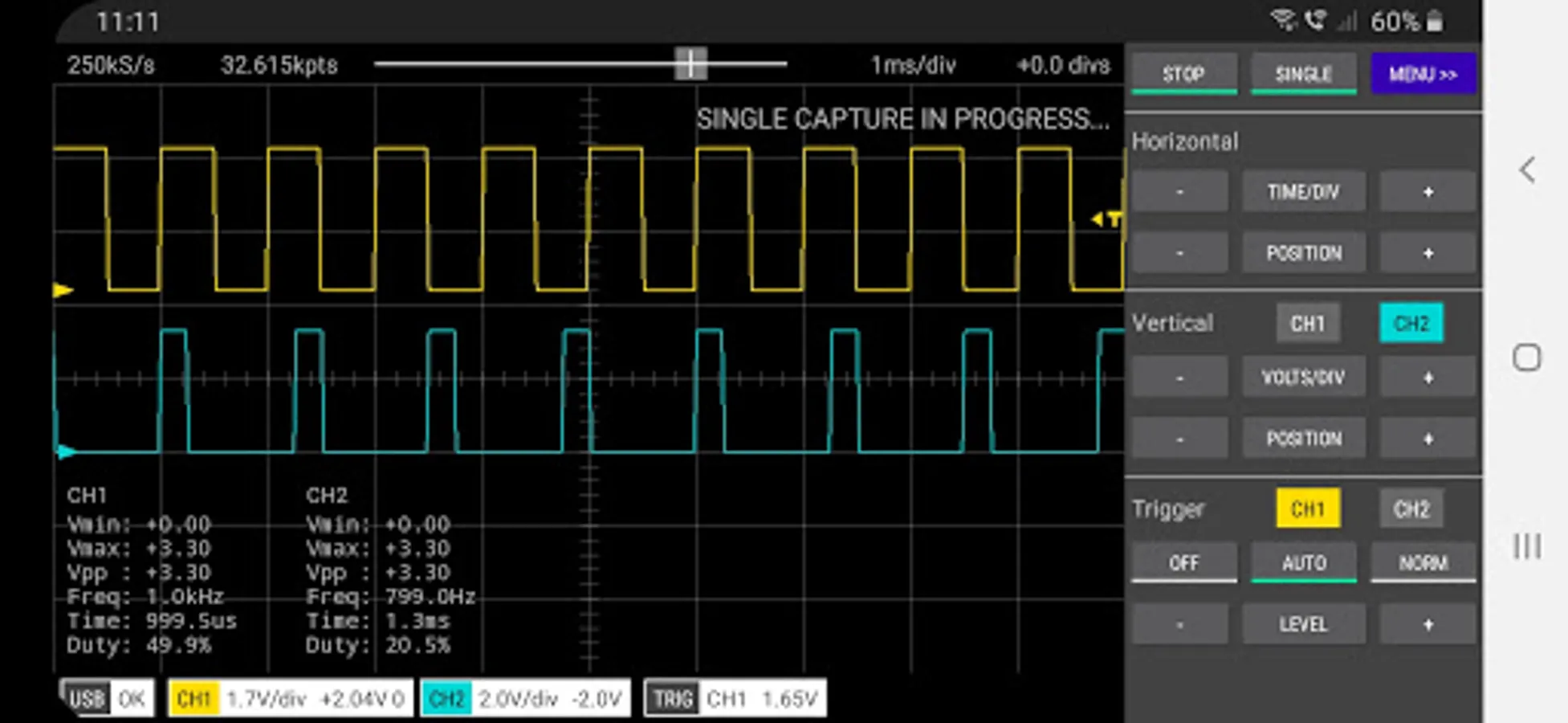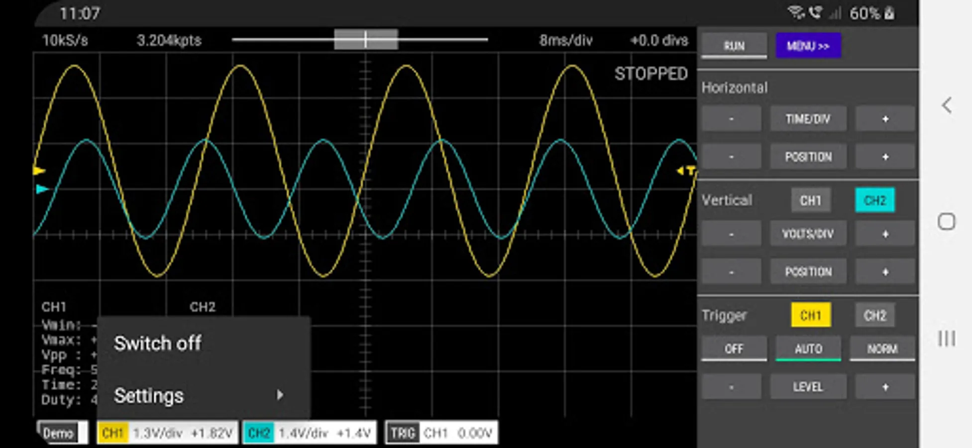 Combine the Scoppy app with a Raspberry Pi Pico or Pico W to create a 500kS/s oscilloscope and 25MS/s logic analyzer.