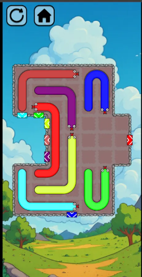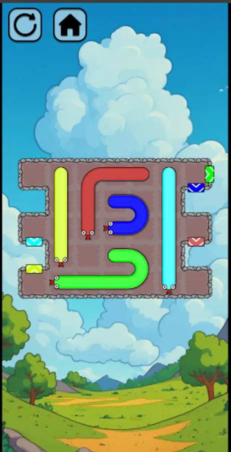 Help the snakes escape the maze by guiding them through the passages and clearing the paths between them.