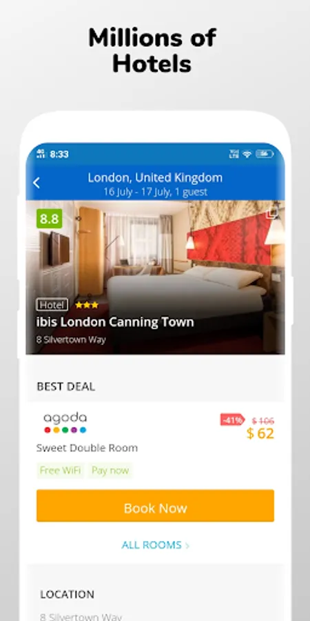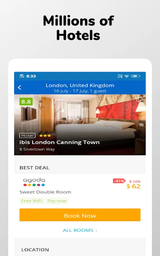 • Free app; no extra charges of booking discount hotel.