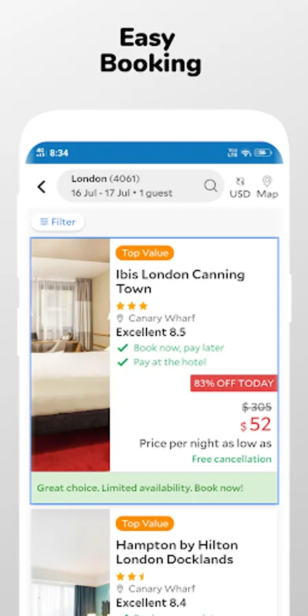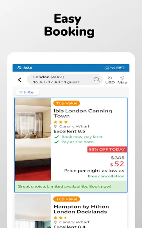 • Filter option to find the best cheap hotels booking offers