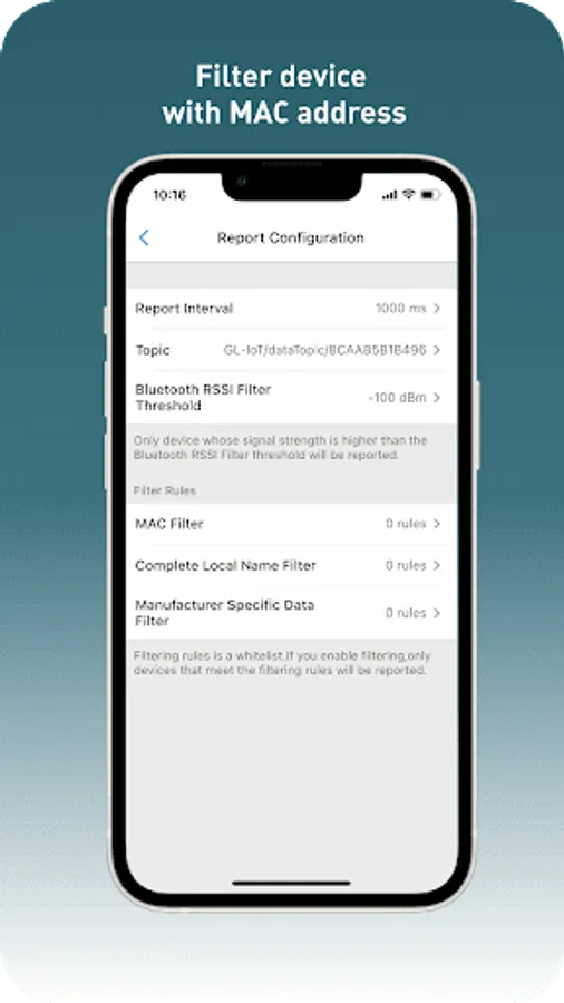 • Device Filtering: Filters GL-S10 devices by MAC addresses printed on the bottom label of your device shell.
