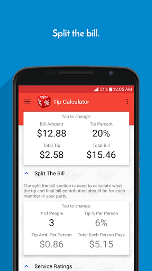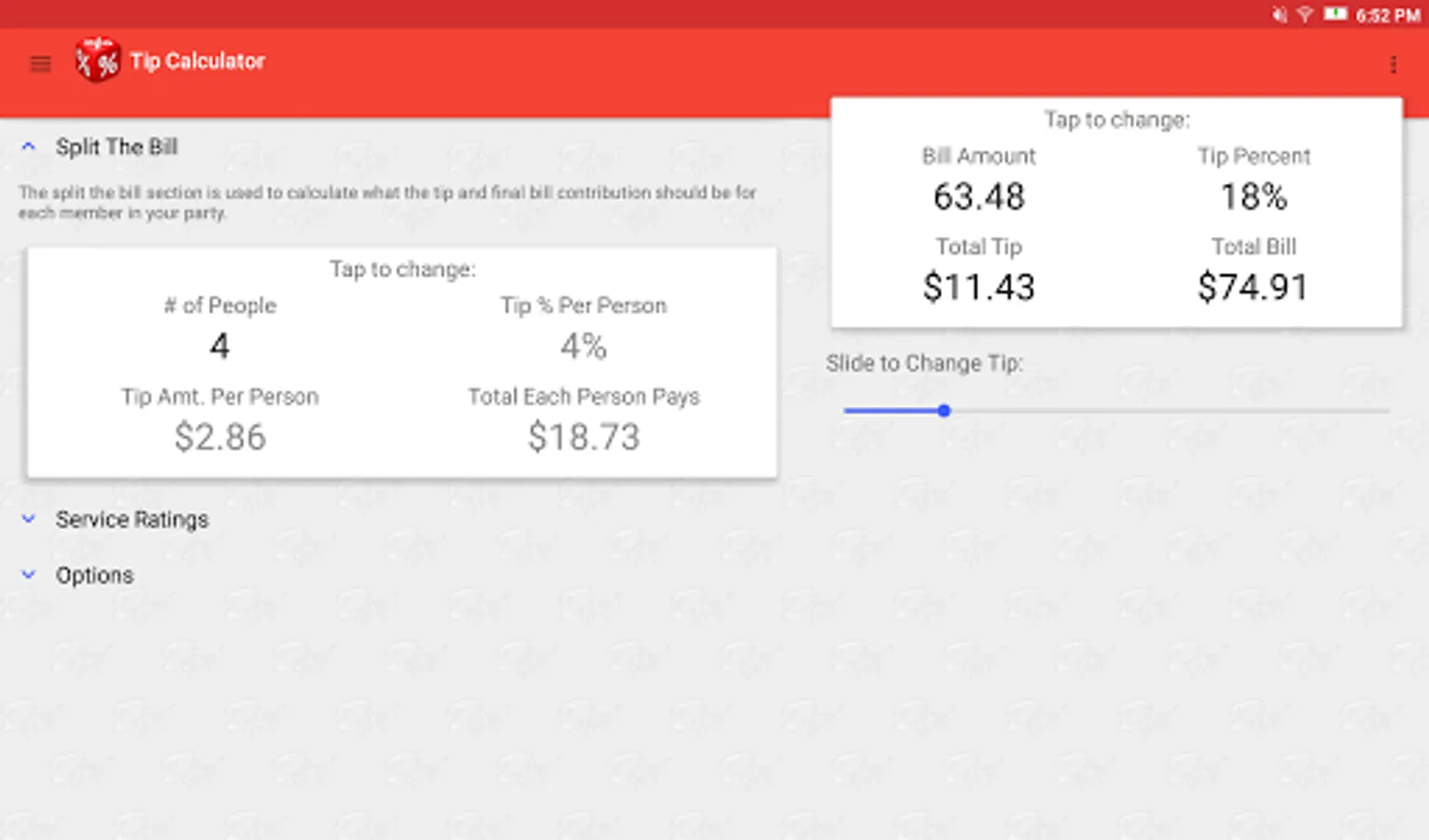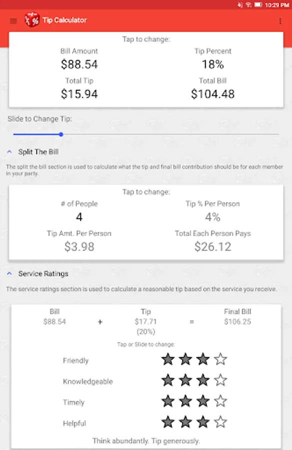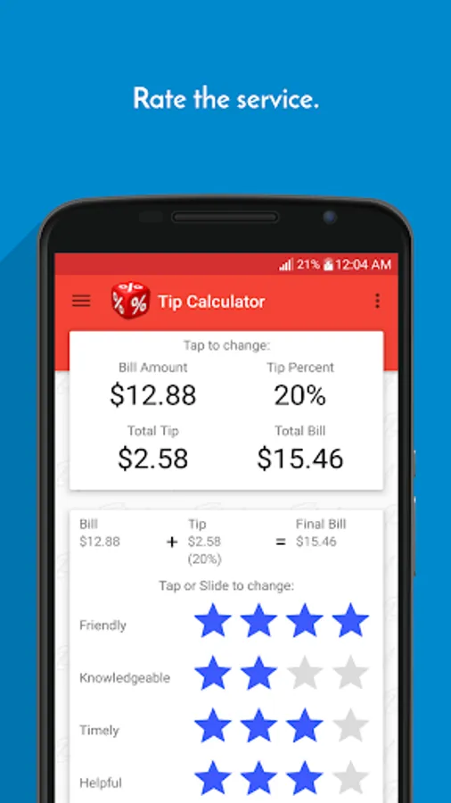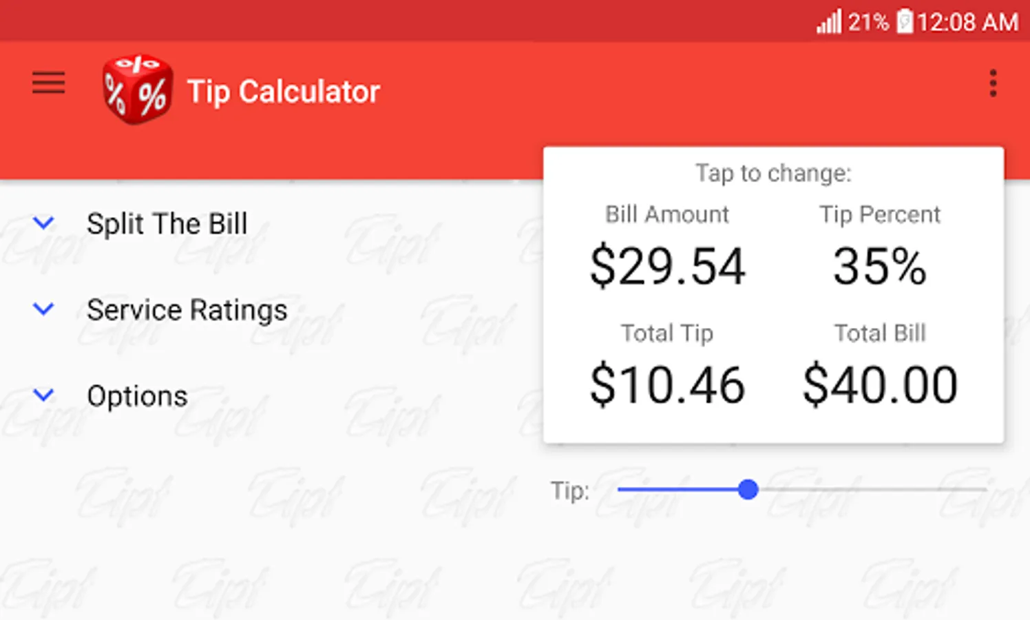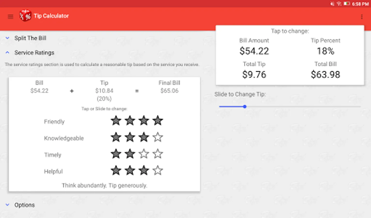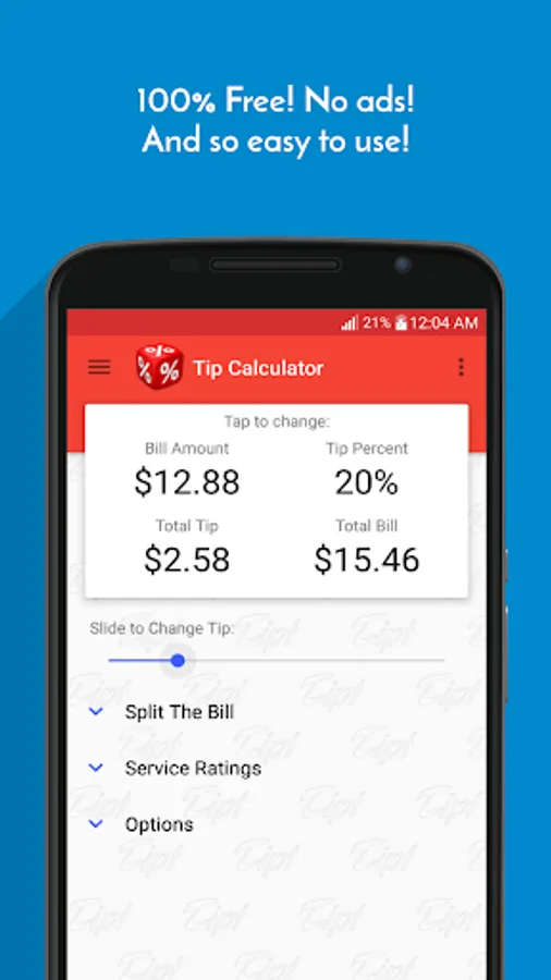 ☆ No math required, just enter your bill and use the slider to pick your tip %.