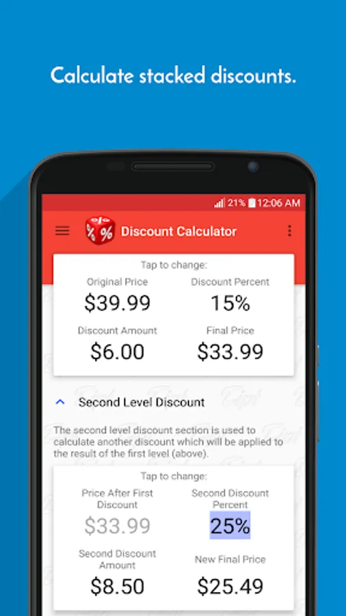 ☆ Or you can figure out how much a discount was by entering the original price and the final price.