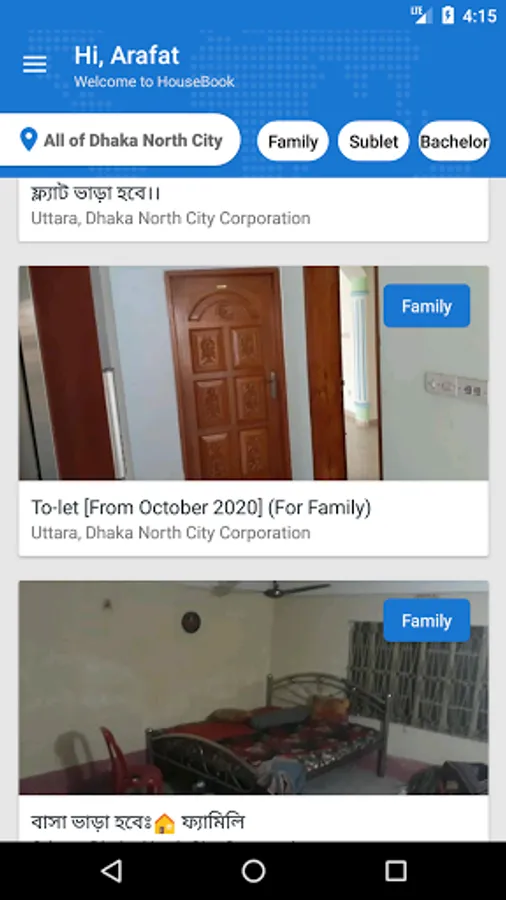 HouseBook is helping renters to find available houses easily. They do not need to go outside and check the "to-let" board of every house. House owners can make their house/flat available for rent through housebook's website or app or messenger bot within some simple steps. Then the renters can check the available list and can easily choose their desired house. Our vision is to make the house renting process easiest.