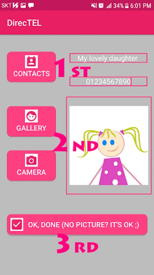 You can make phone calls directly to your lovely family and friends by pretty icons you make on home screen.