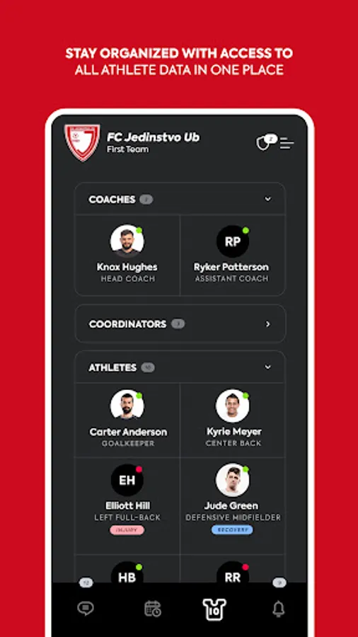 All GameTime features are built in mind for coaches, athletes, coordinators, team managers, medical staff, directors, owners, and all other key stakeholders.