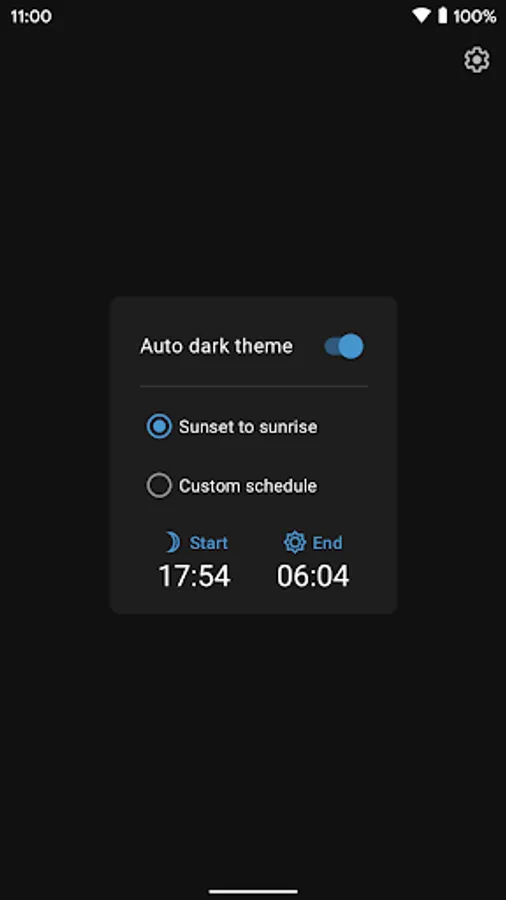 With Dal, you can schedule the theme switching time to your liking, or use sunset and sunrise time¹. So why switching theme manually if Dal can do it for you?