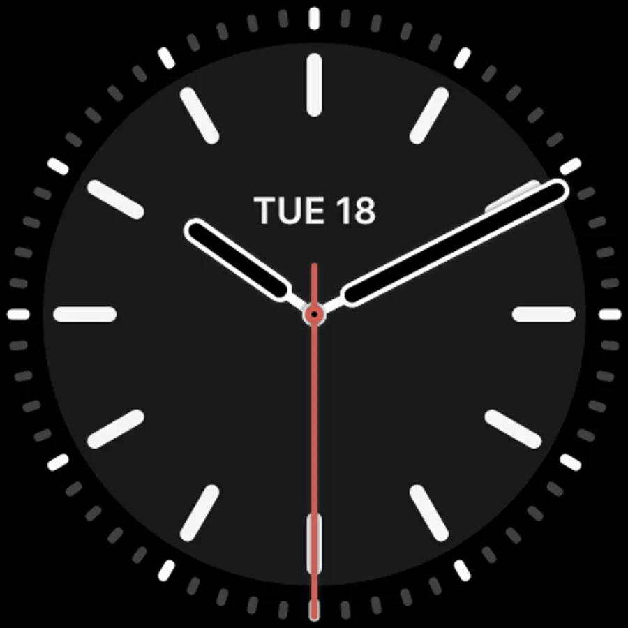 A simple analog and digital watch face with granular modifications. Both watch face variants supports enhanced ambient mode on select Wear OS devices.