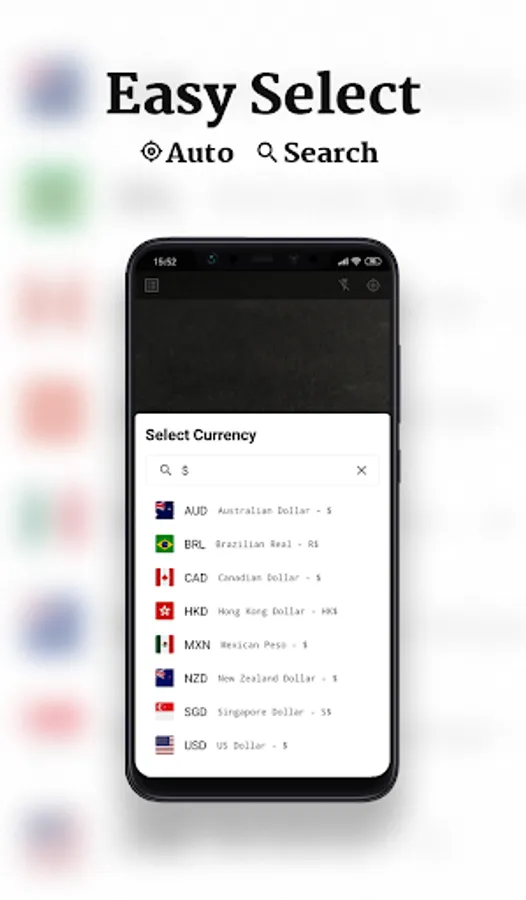 • Easy selection of currencies: search with the name of the currency, code, country of use, symbol...