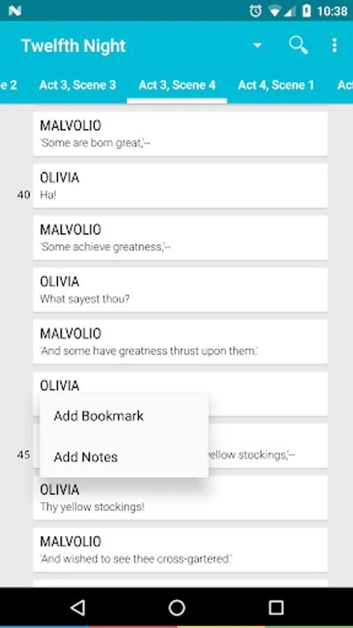 By long pressing on a speech, you can bookmark or take notes on a passage. You can also search within your current play.
