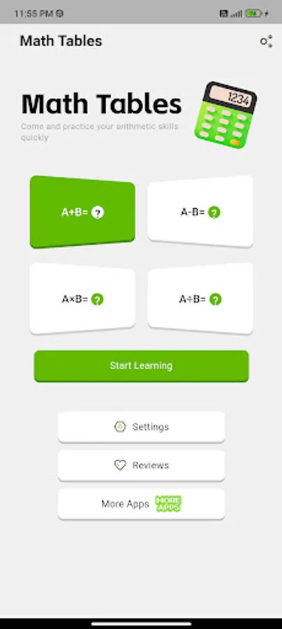 Math Tables is an app designed for beginners in mathematics, which can help beginners in mathematics quickly master addition, subtraction, multiplication and division operations.