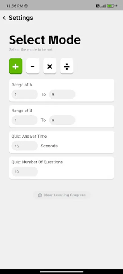1. Quiz Mode: You can set the difficulty of the questions independently for any operation in addition, subtraction, multiplication and division.