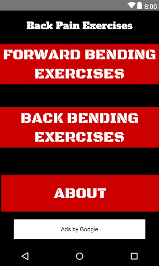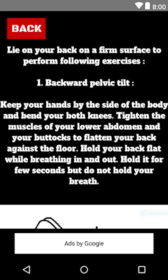 This educational mobile application deals with exercises helpful in relieving back pain. The information provided is not individualised and is not substitute for professional advice from doctor familiar with the problems unique to each case. Before performing these exercises the individuals are advised to consult a qualified orthopaedic surgeon.The developer of the application shall not be responsible for any injury caused directly or indirectly arising out of use of the mentioned information.
