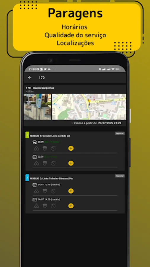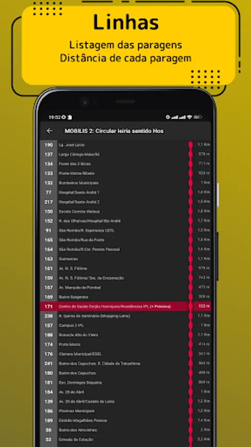 In the absence of this information, the estimated arrival times of each bus at a stop will be made available, as well as a list of all stops and lines of the Mobilis de Leiria service.